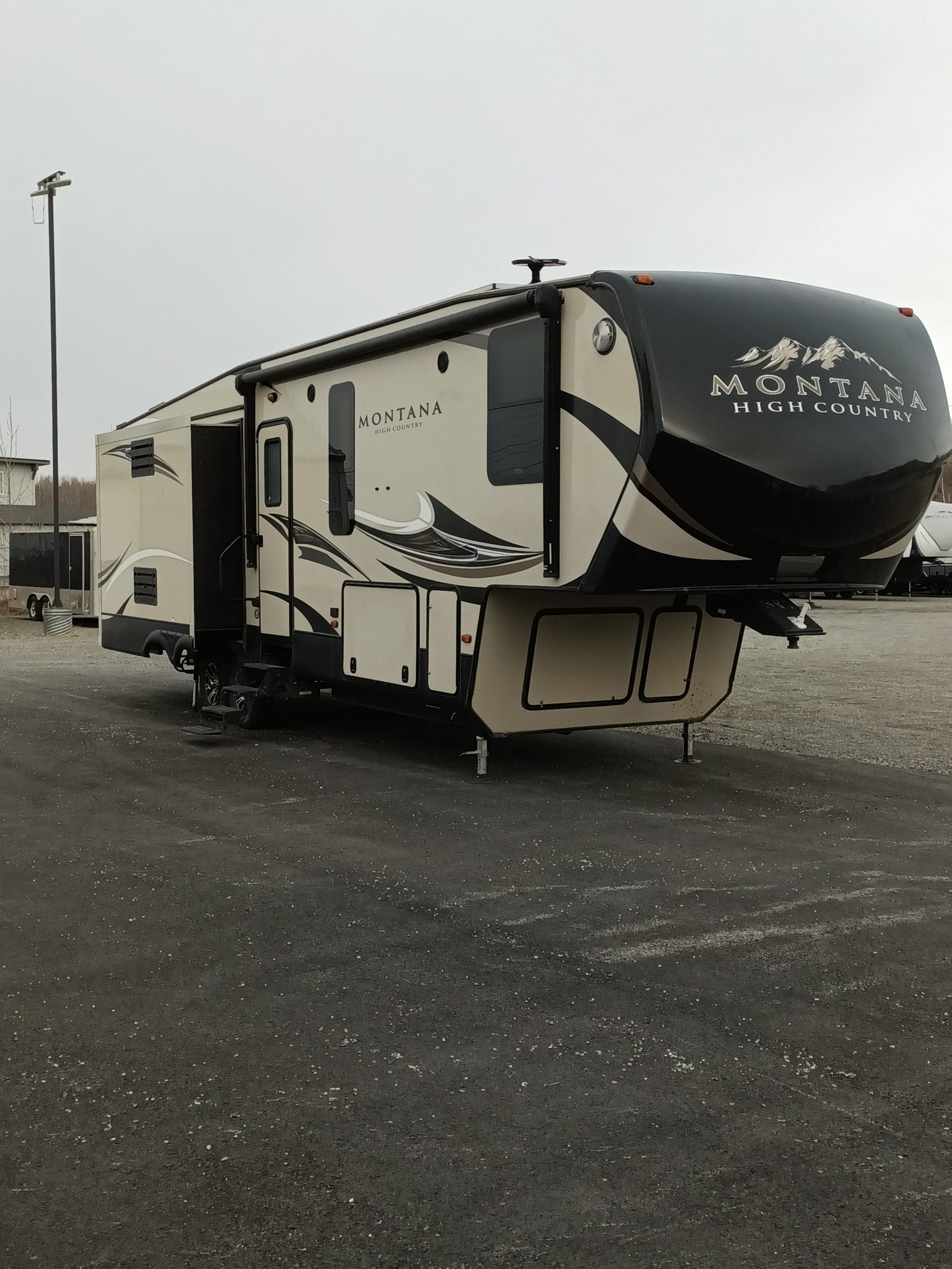 The 2018 Keystone Montana High Country 305RL is a luxury fifth-wheel trailer known for its rear-living layout, triple slide-outs, and residential-style amenities