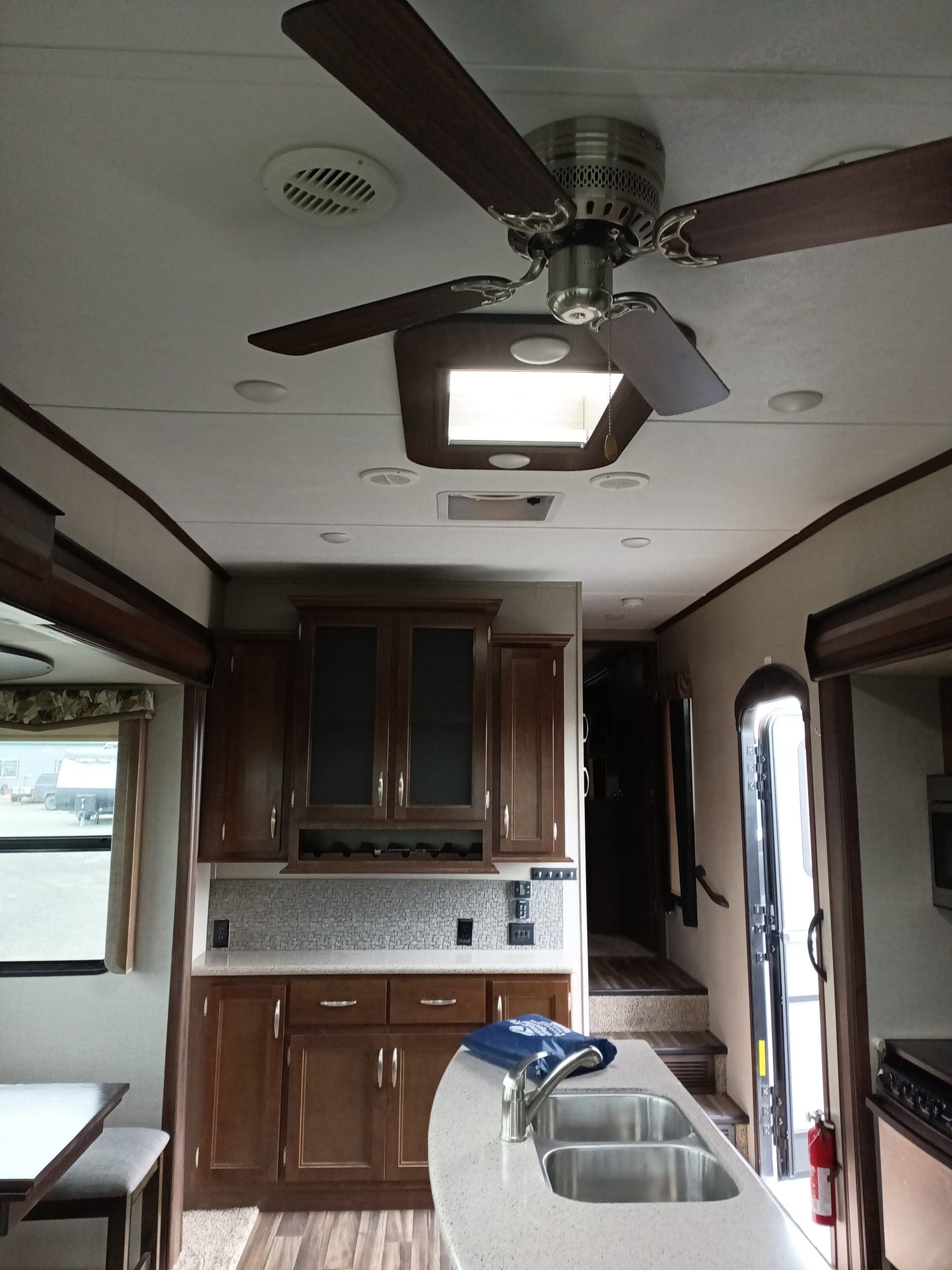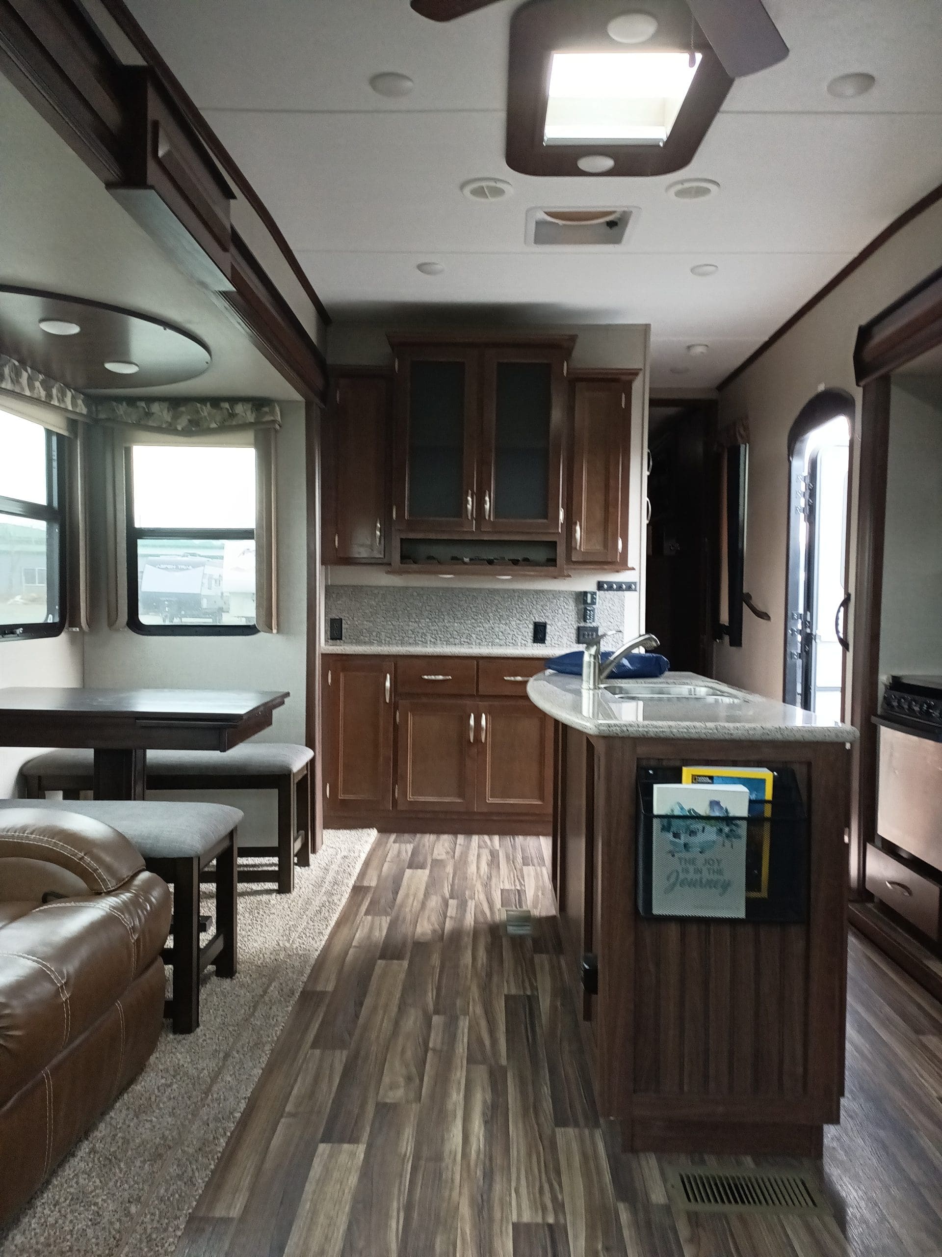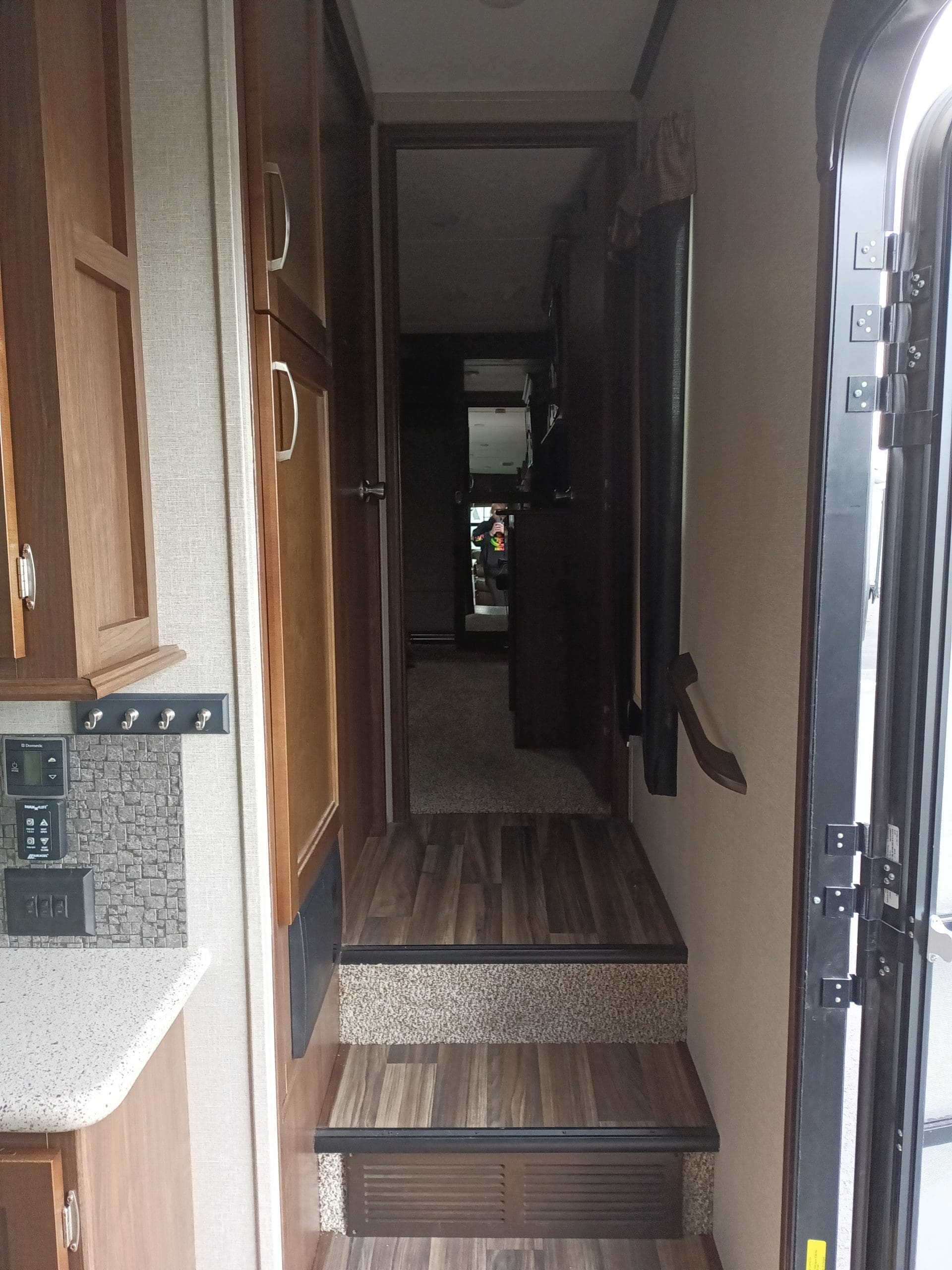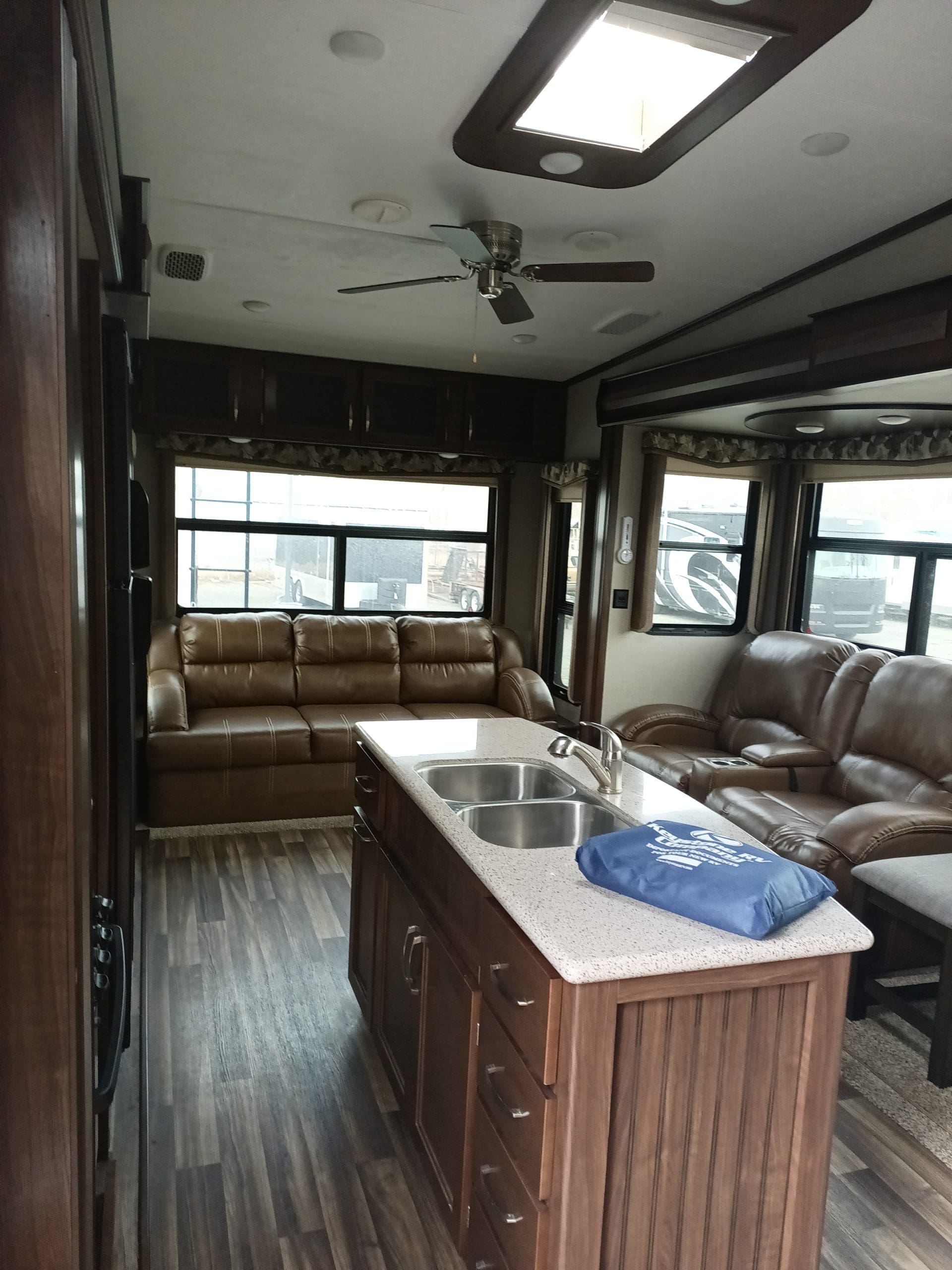 Exterior: Comes with a 17' power awning with LED lights and a 4-point electric automatic leveling system