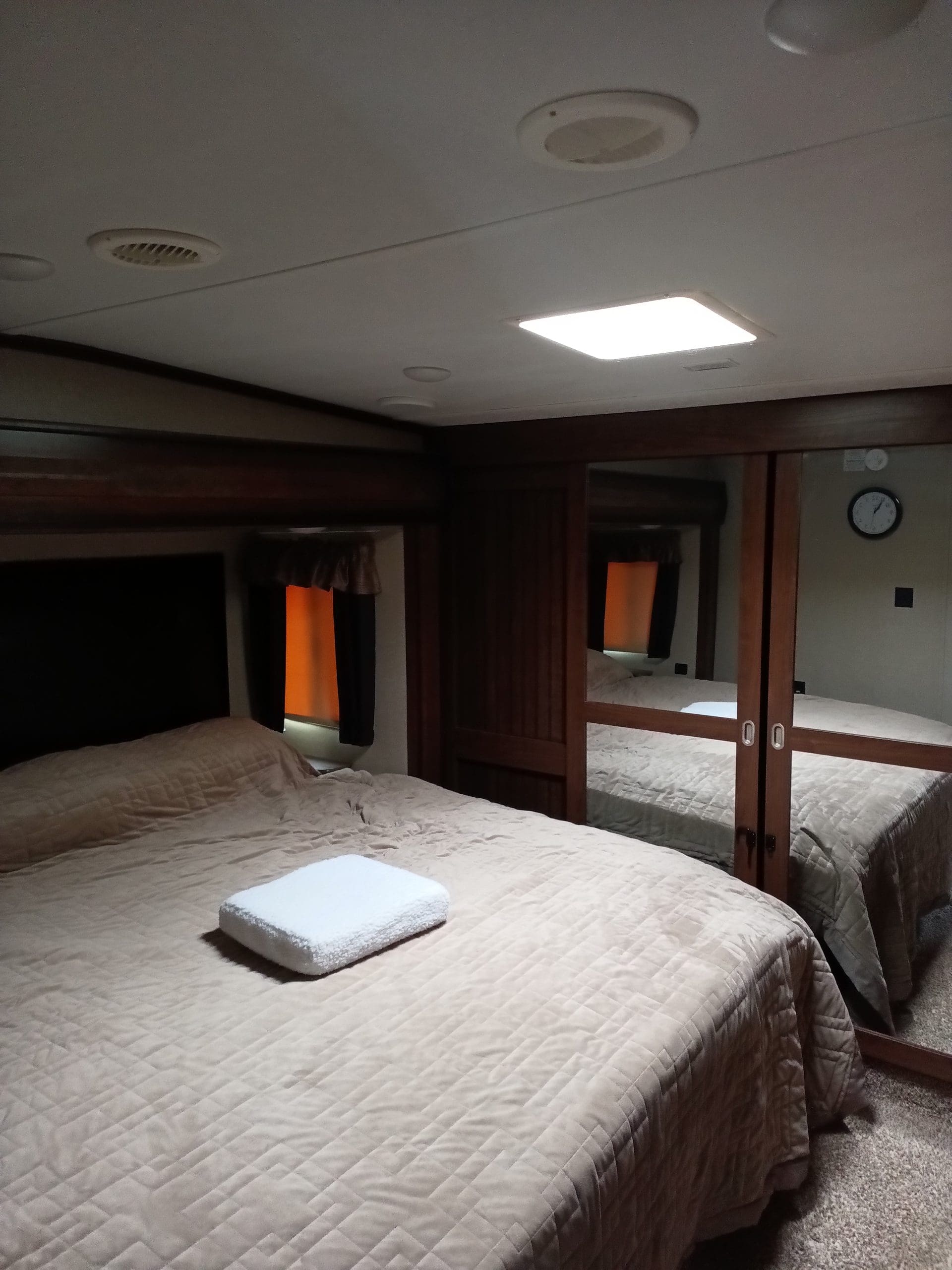 Bedroom: Standard 60" x 80" Queen bed with massive under-bed storage and washer/dryer prep