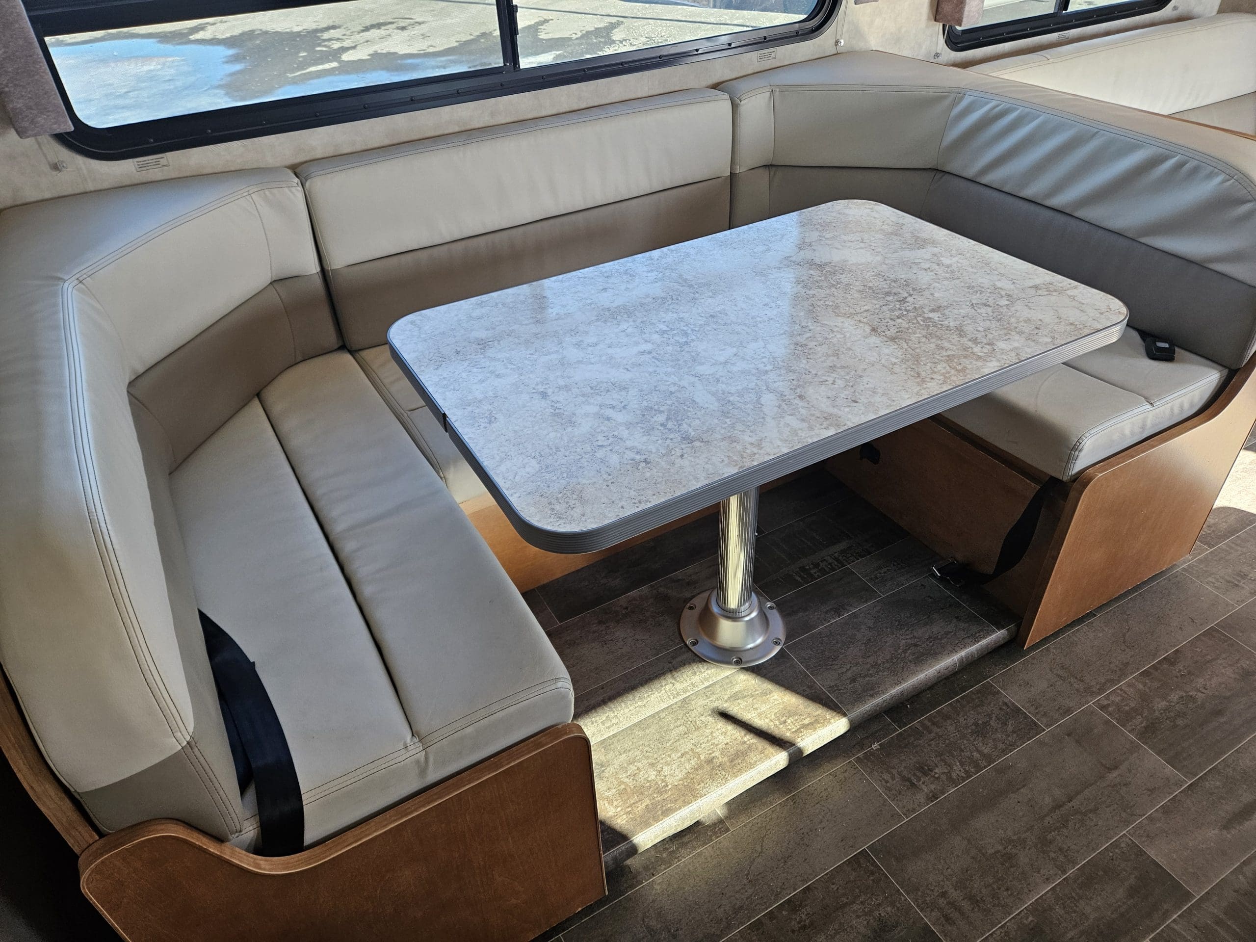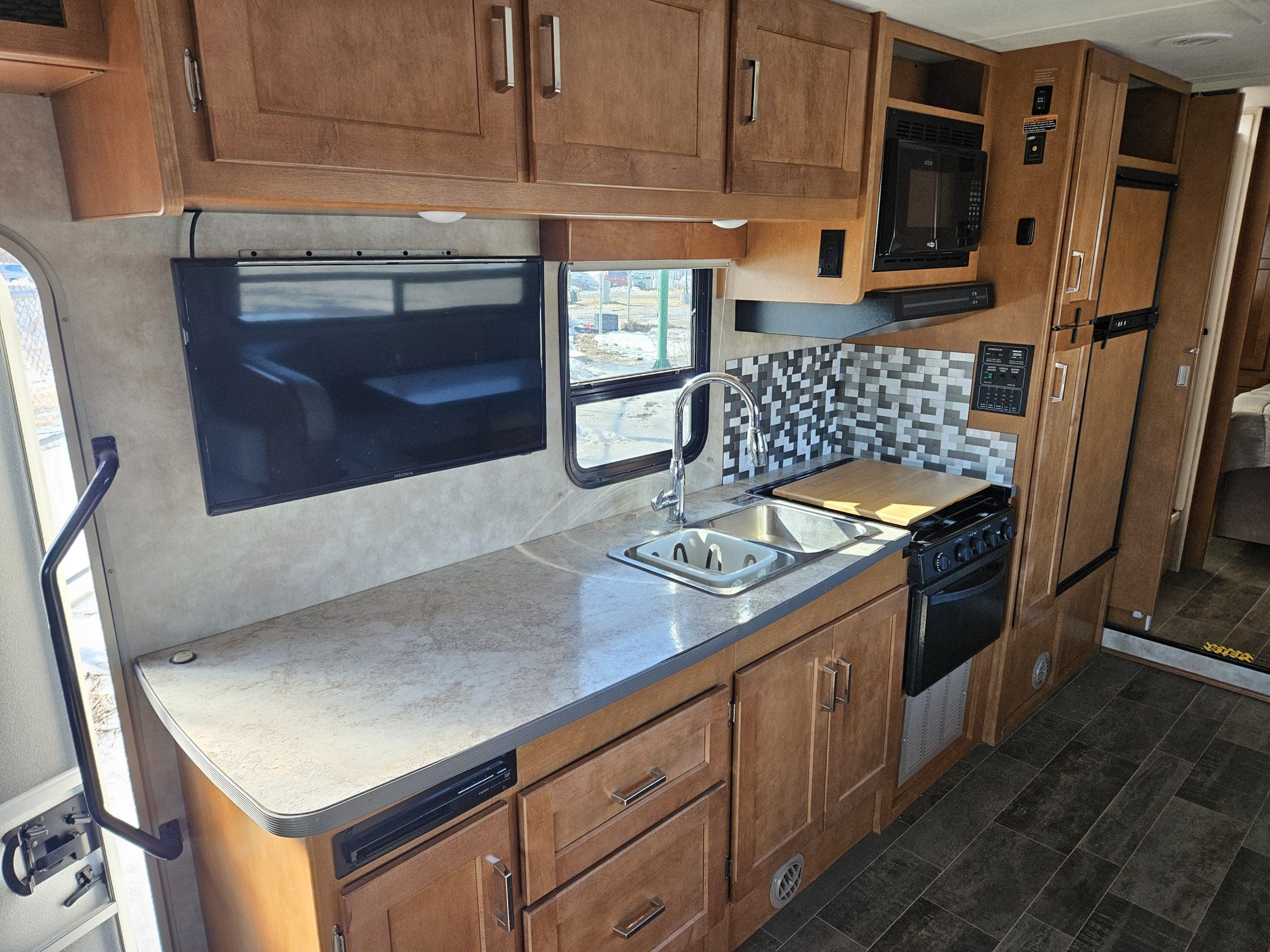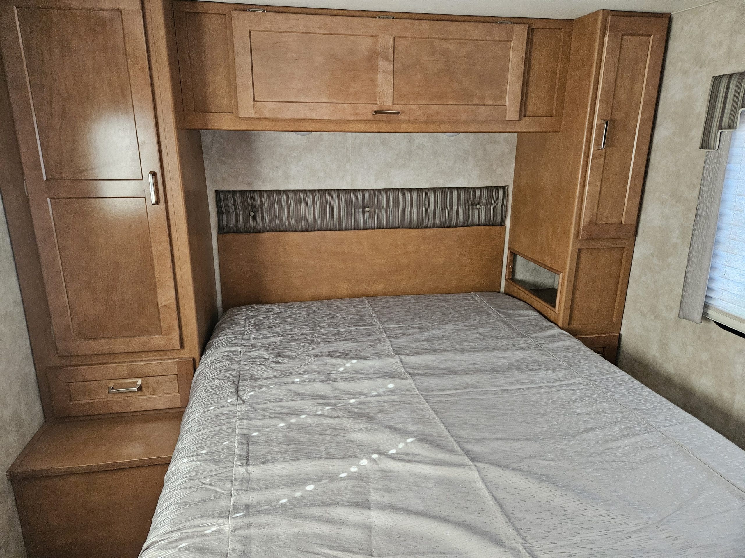 The 2019 Winnebago Minnie Winnie 31K is a 32'9" Class C motorhome on a Ford E450 chassis featuring a single large slide-out in the living area. It sleeps up to 7 people with a rear queen bed, sofa/bed, convertible dinette, and overhead bunk. Key features include a mid-coach split bath, a full galley, and 108 cu. ft. of exterior storage.